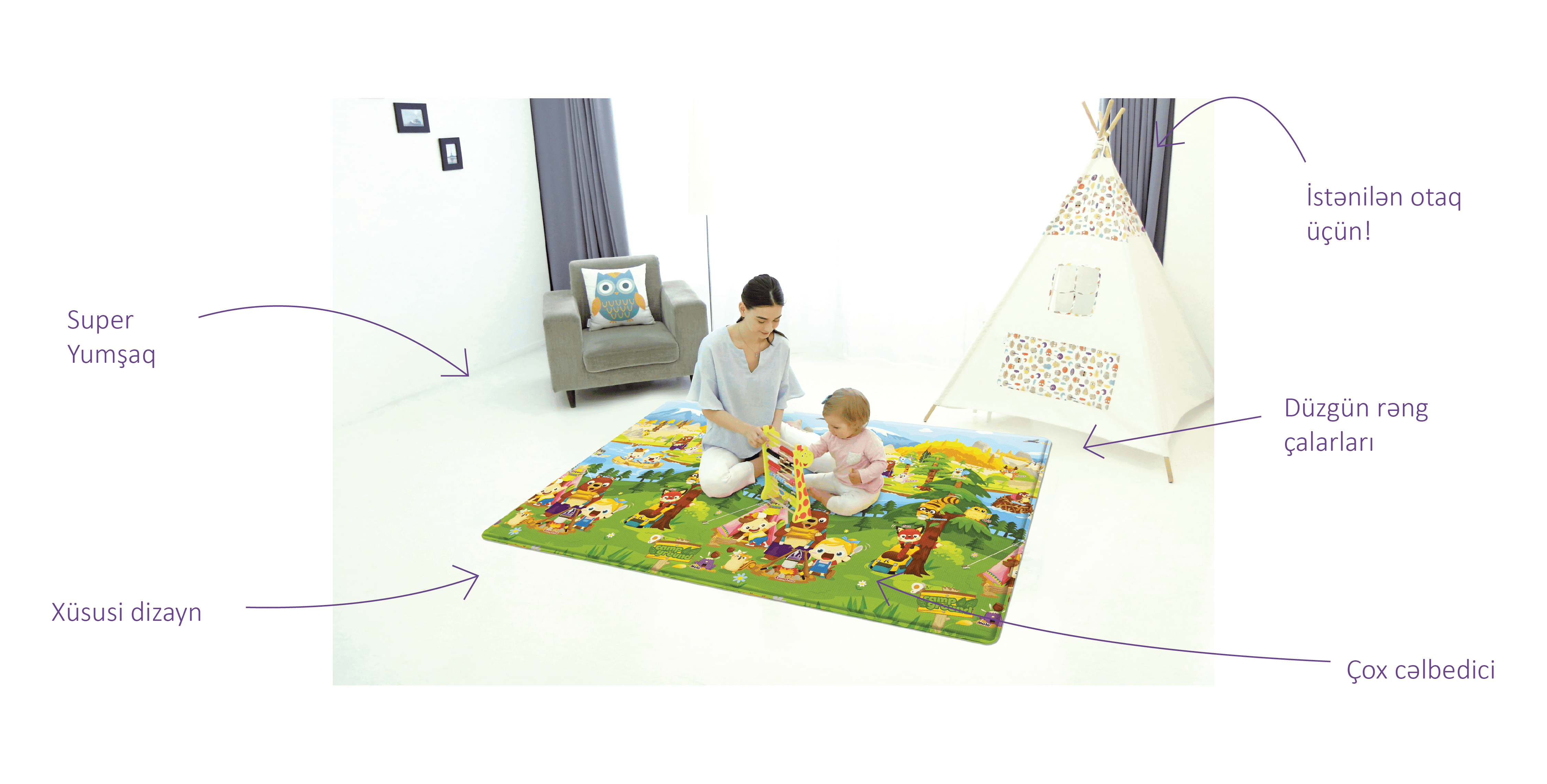Babycare Crown Let’s Go Camping öz dizaynı və funksionallığı hesabına aktiv hərəkətlər üçün faydalıdır. Bu playmat həm oyun sahəsi, həm öyrədici elementlər, həm də elastiklik hesabına övladlarınızın öyrənərək inkişafının və əyləncəsinin ideal təminatçısı funksiyasını daşıyacaqdır. Valideynlərin diqqəti üçün isə bu xüsusiyyətlər daha vacibdi: Antibakterialdır Gigiyenikdir Elastikdir Möhkəmdir Su keçirmir