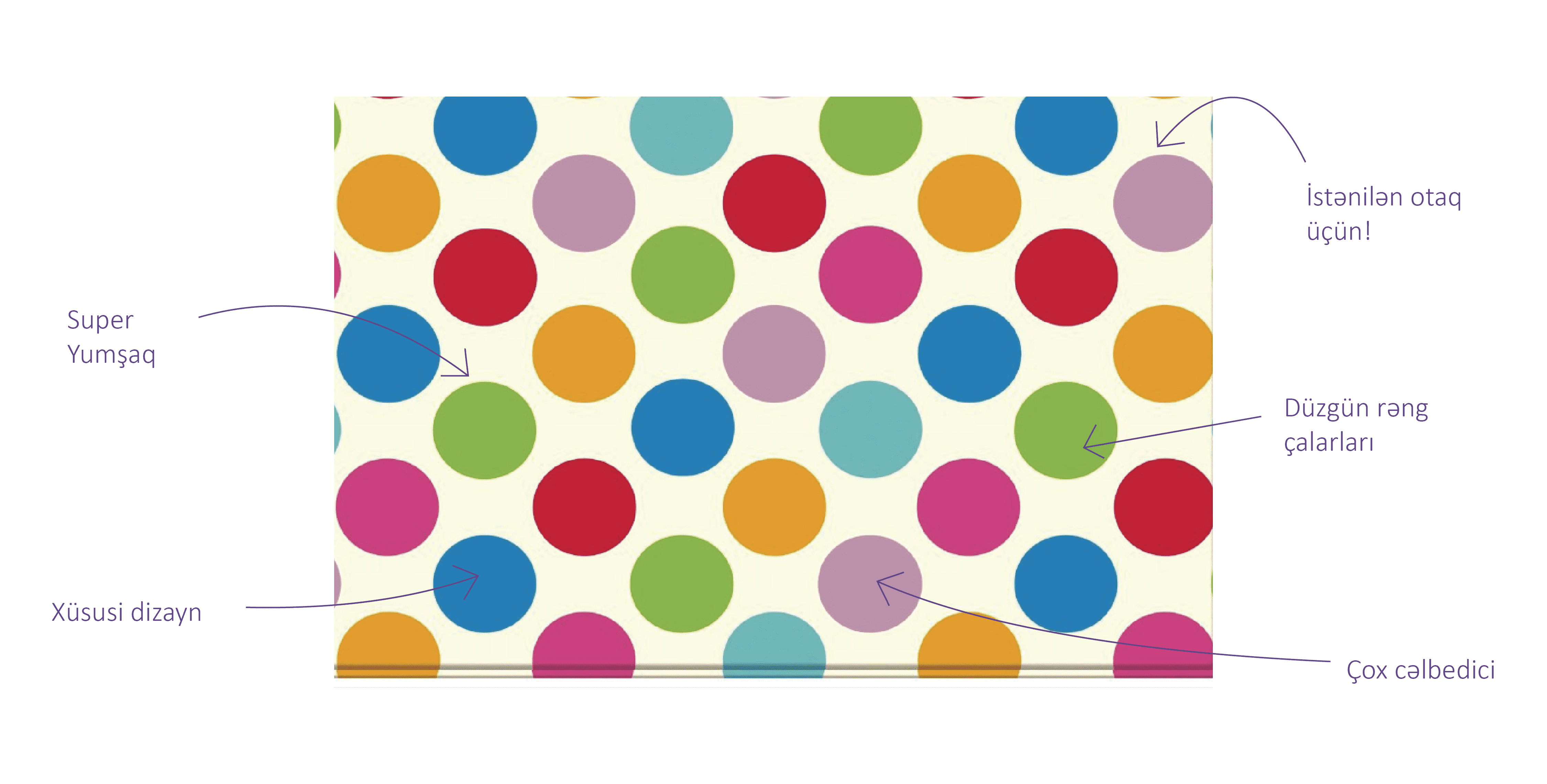Multi Mat Polka Dot ev və çöl üçün oyun matı xüsusiyyətlərini özündə cəm etmiş bir məhsuldur. Multi Mat Polka Dot playmatının yumşaqlığı onun üzərində bütün hərəkətləri rahat edə bilmək imkanı verir. Playmatın rahat və yumşaq hissələri onların üzərində gimnastik hərəkətləri belə rahatlıqla etməyə imkan verir. Bunun hesabına da körpələrin inkişaf etməkdə olan əzələləri düzgün formalaşacaqdır.